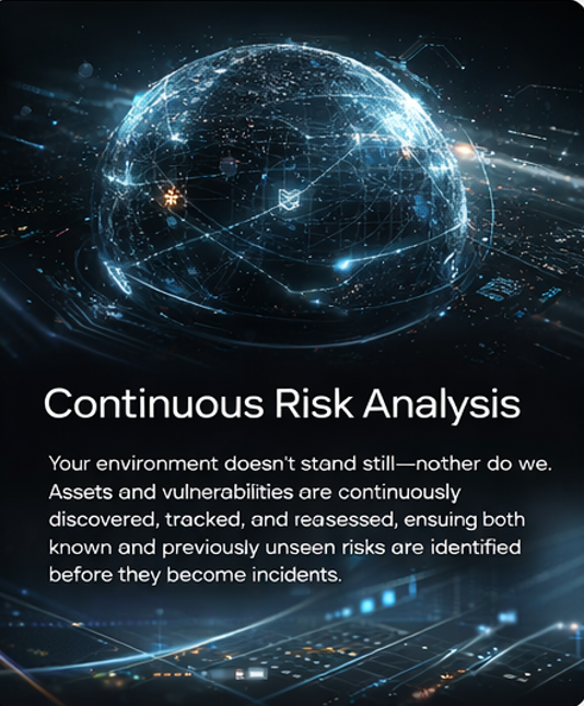 We identify your full attack surface using authenticated scans, passive discovery, cloud integrations, and asset mapping. This delivers continuous visibility across known systems and previously unseen assets.